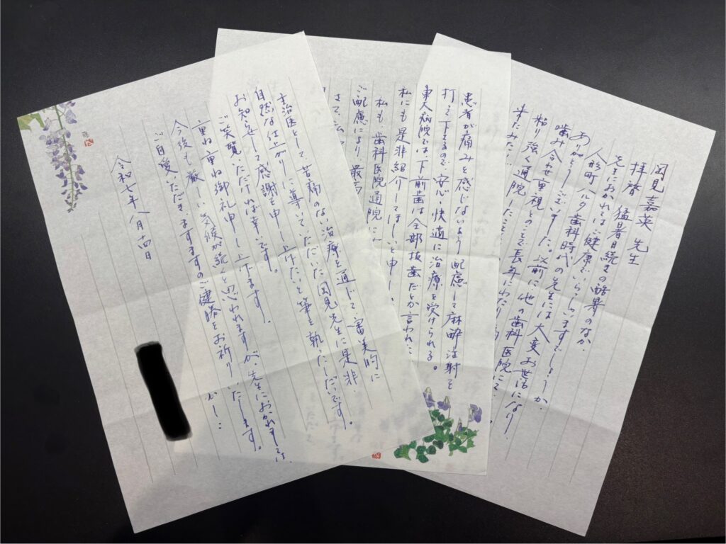 以前担当していた患者さんから感謝の手紙が届いて大変嬉しかったため本人に確認後