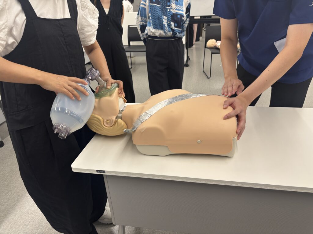 お昼休憩を挟み午後は救急救命の講義を受講し、実習も行いました。